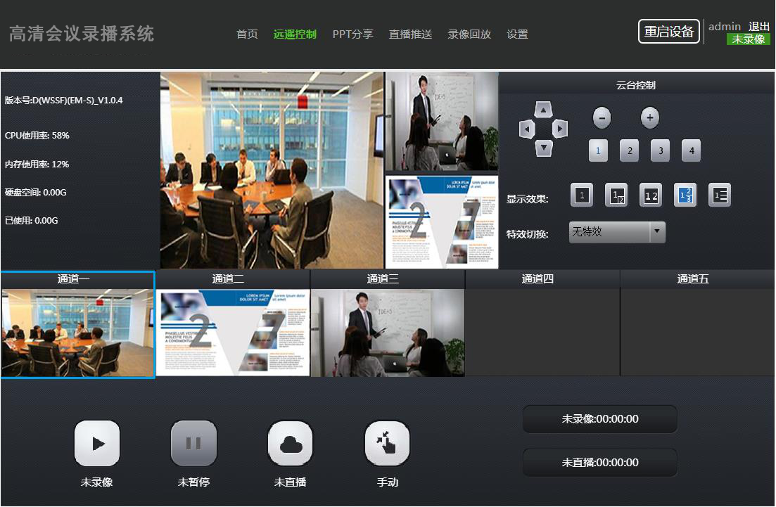 14、通过WEB浏览器管理,人机操作界面。可远程控制录播的状态;