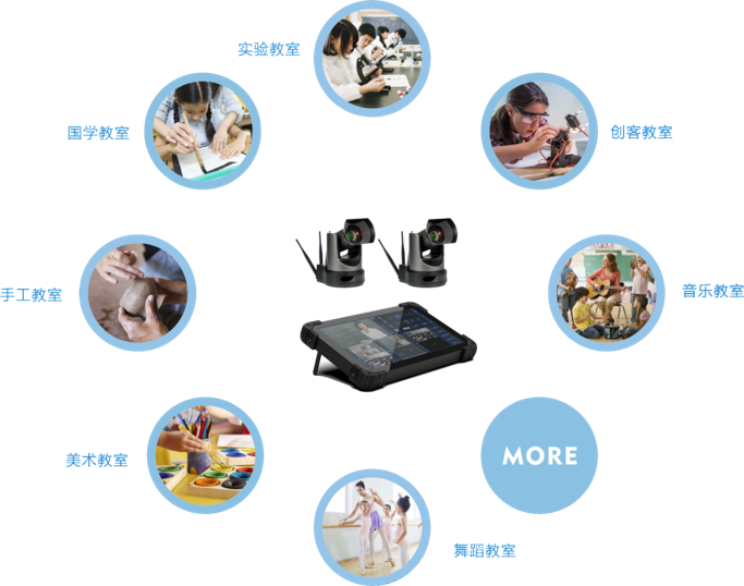 应用场景:可广泛应用于学校精品课堂建设、互动教学、校园活动直播、视频会议录播系统、新闻发布会、赛事活动等场合。