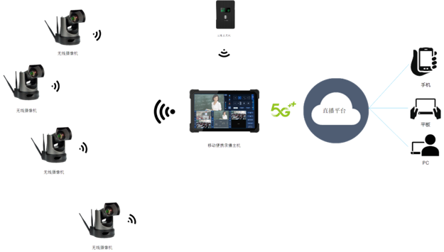 2) 3路无线射频云台摄像机接入,1路HDMI有线接入,支持无线、有线音频同步输入