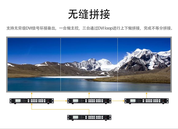 的重要组成部分,它可实现等分拼接和不等分拼接,大大满足用户在拼接上的各种需求。在多台处理器中实现了帧同步,0延时,无拖尾等技术,使演出完美顺畅。不等分拼接与画面部分输出为同一设置方式,用户可详细阅读后面章节的操作说明。