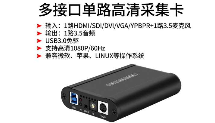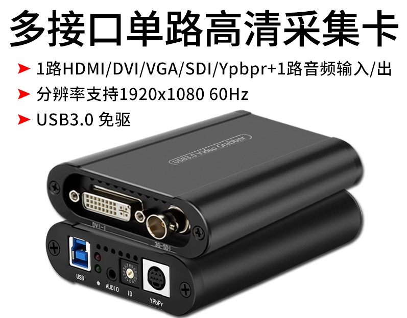 1路高清DVI(兼容HDMI/VGA)&SDI&YPbPr视频采集输入,