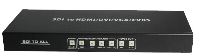2、支持多路HDMI、DVI-D、VGA 、(CVBS+L/R)多路信号同时输出(SDI*1;VGA*1;DVI*1;HDMI*1;cvbs*1)